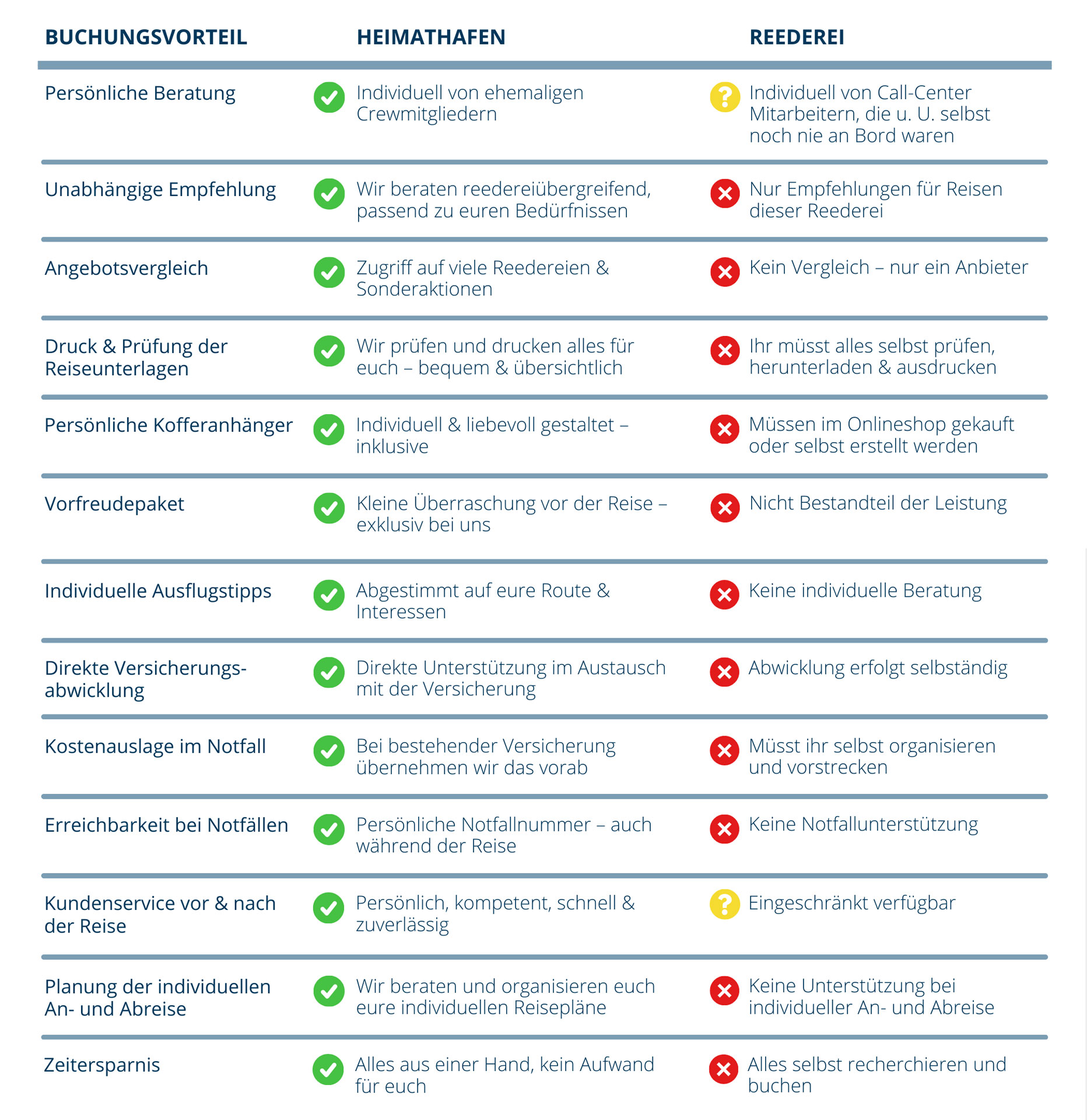 Warum im Heimathafen buchen - statt bei der Reederei direkt?